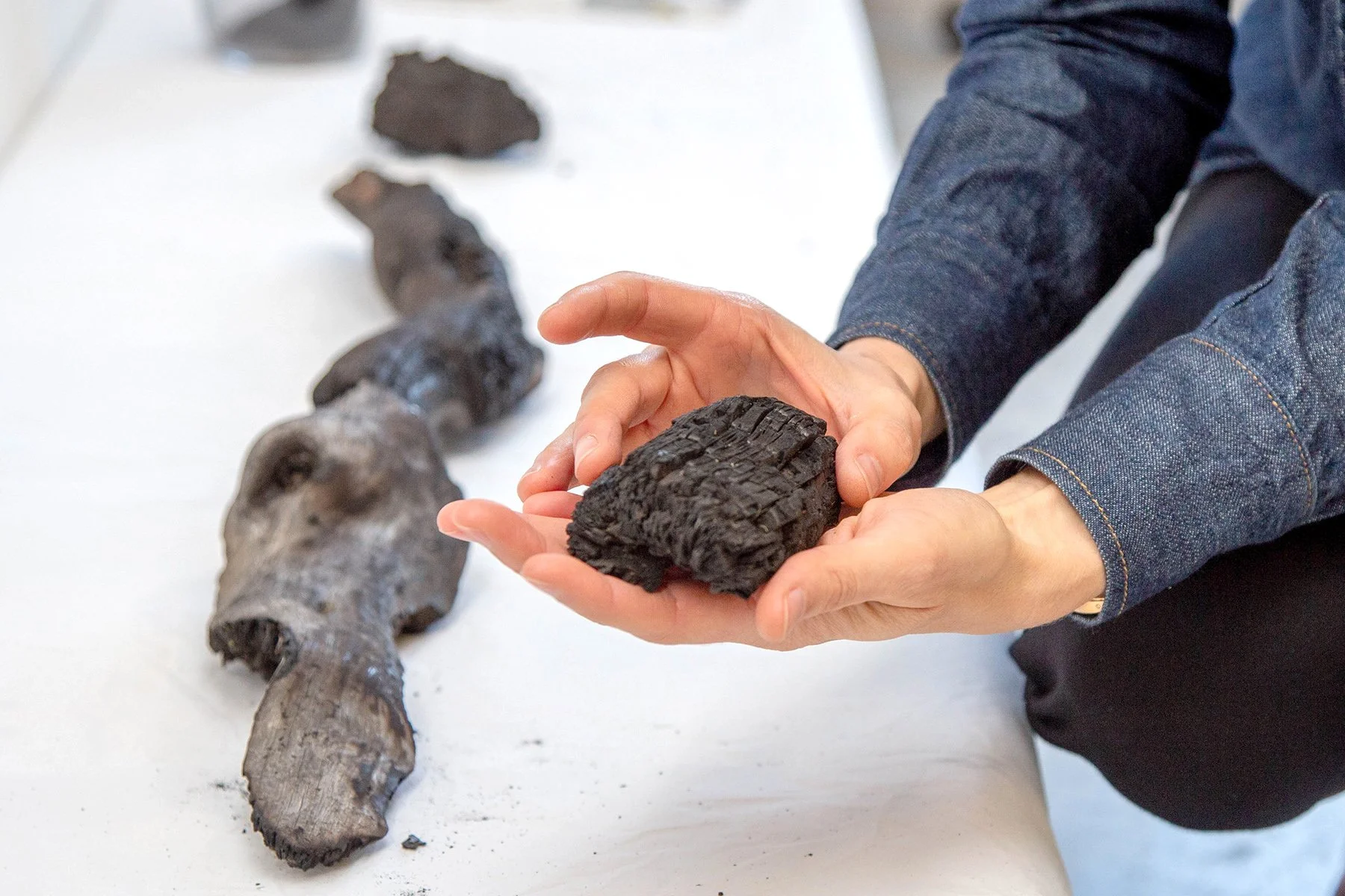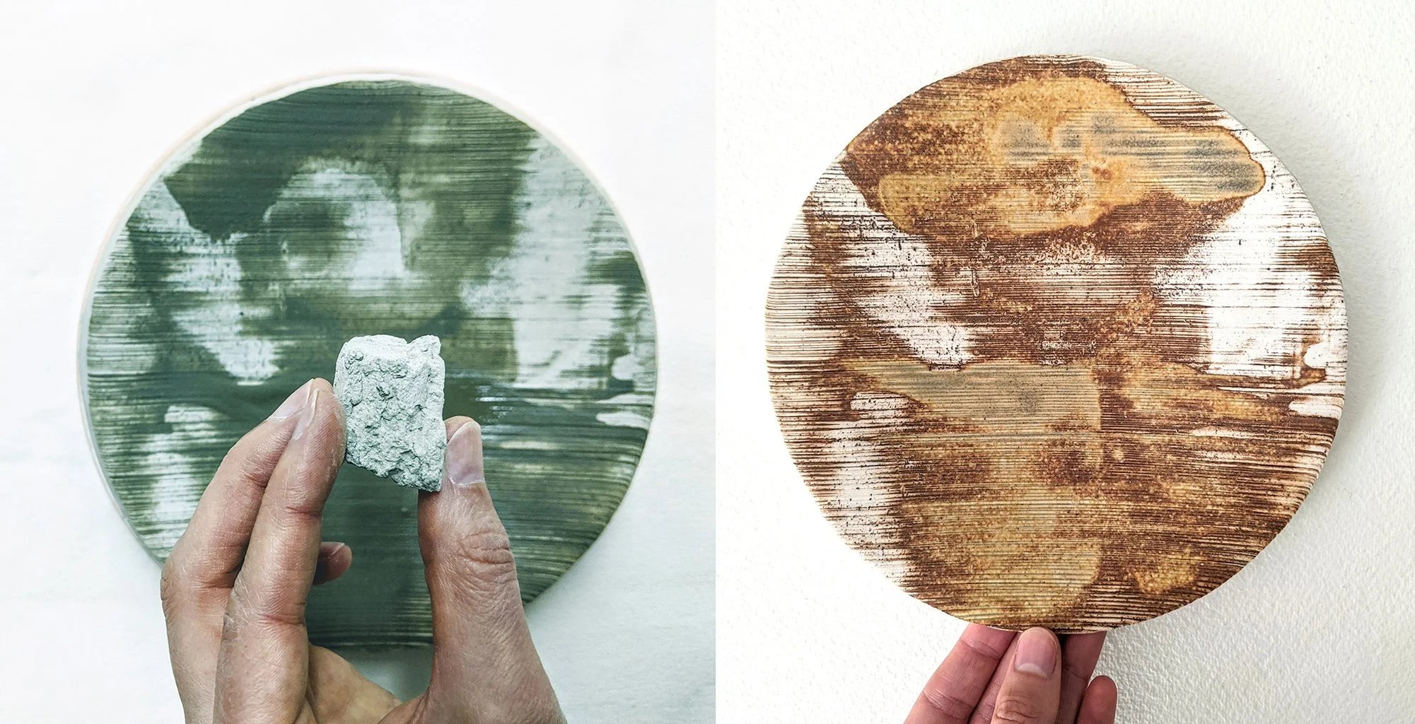 This cross-disciplinary exploration stems from her interest in human artifacts that reveal how the Earth’s history and human storytelling are deeply intertwined. Raintree often works with materials sourced directly from the environment, allowing the properties of stone, sediments, and ash to transform her projects, bringing chance and material agency to the forefront of her process.